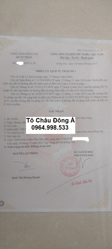 Tô Châu Đông Á là tập đoàn lớn mạnh số 1 tại Việt Nam chuyên cấp phiếu lý lịch tư pháp nhanh chóng, giá rẻ.