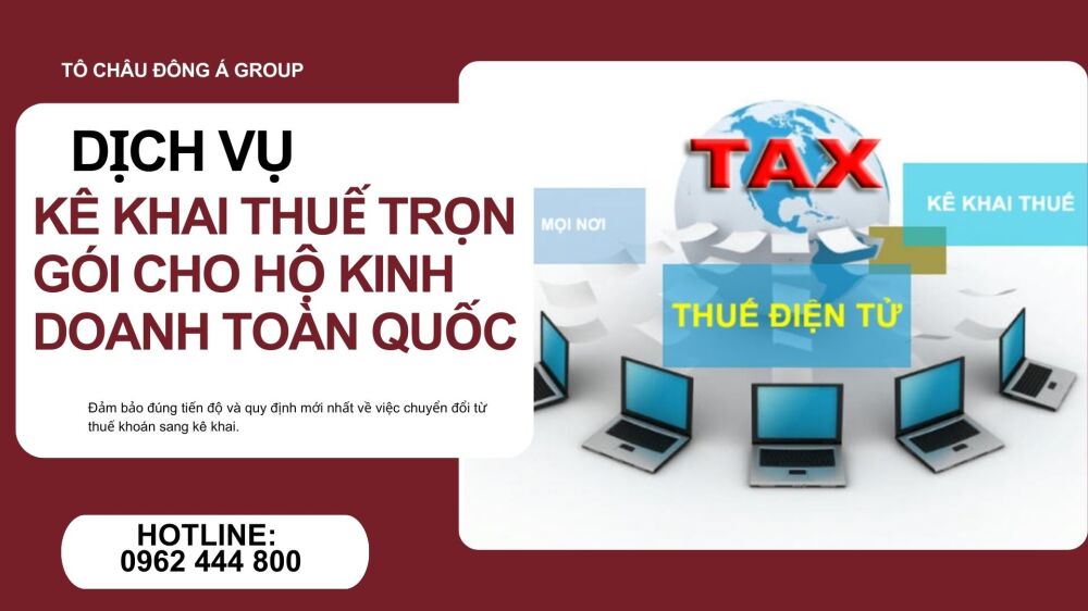 Tô Châu Đông Á Group tự hào là đơn vị cung cấp Dịch vụ Kê khai Thuế Hộ Kinh Doanh trọn gói, chuyên nghiệp và uy tín hàng đầu tại TP.HCM, giúp Quý khách hàng tại thành phố và các khu vực lân cận an tâm kinh doanh, loại bỏ mọi rủi ro về thuế.