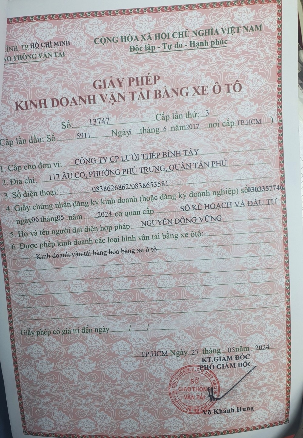 Giấy phép kinh doanh vận tải Bình Định nhanh, giá hấp dẫn